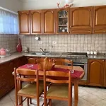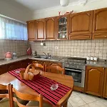 Eine voll ausgestattete Küchenzeile in der Ferienwohnung At Teo'S bietet einen Toaster und einen Herd. Die Ferienwohnung At Teo'S ist ganz nah an der Bushaltestelle Shkolla "Marie Kaculini".